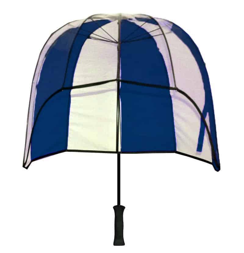 The ultimate Windproof Golf Umbrella for Golfers and Spectators. Windproof Golf Umbrella is designed to cover head and shoulders, with four clear front panels for viewing and protects you from all weathers while on the fairways. Undergone extensive testing in a wind tunnel to gale force 7. Canopy width when open 89cm